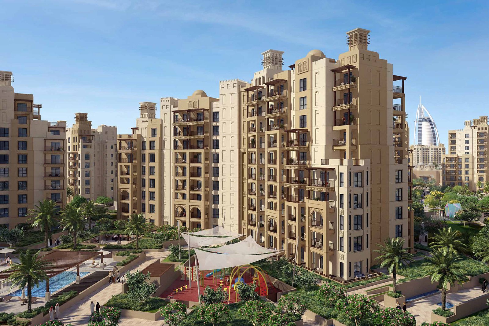 Al Jazi by Meraas is a premium residential development in Dubai, featuring four elegant nine-storey