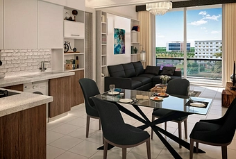 Olivz by Danube Properties is a premium residential development located in the vibrant and mixed-use neighborhood of Al Warsan First, one of Dubai's most desirable areas. This 7-storey luxury complex offers elegantly designed studios, 1-bedroom, and 2-bedroom apartments surrounded by beautifully landscaped gardens and tranquil water features. The interiors are crafted in a contemporary style with neutral tones, high-quality finishes, and are fully furnished with modern appliances—creating a warm and inviting atmosphere ideal for comfortable living.